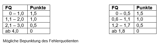 Errechnung des Fehlerquotienten (FQ) und anschließende Bepunktung